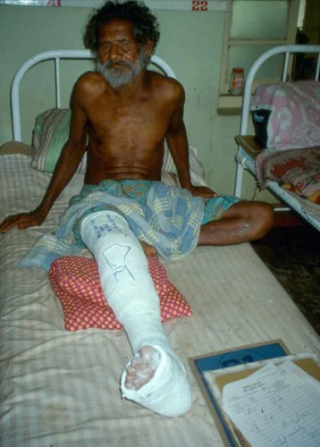 In resource deprived settings the mainstay of fracture care is conservative treatment in plaster-of-Paris or traction. Plaster-of-Paris is relatively cheap and versatile and can even be improvised from crepe bandages and building plaster in extreme circumstances. The definitive treatment of long bone fractures by skeletal traction was once commonplace even in the developed world, but the skills of applying and managing traction have now largely been lost to surgeons in high-income countries. In the less developed world, with few surgeons, limited access to theatre and limited availability of internal fixation devices treatment of long bone fractures by traction is essential.