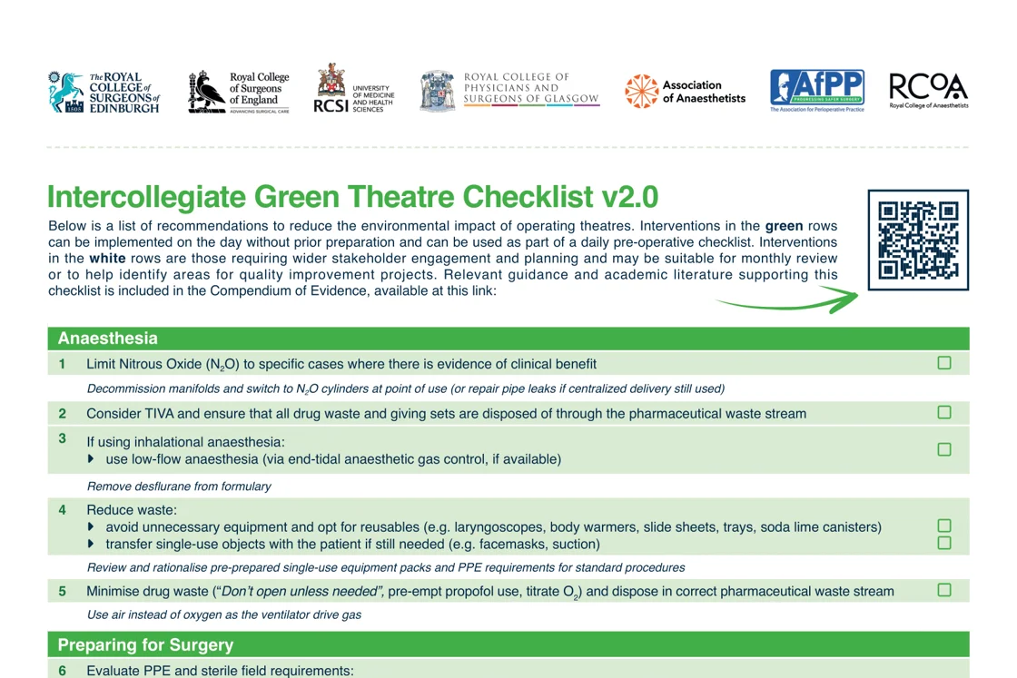 The UK and Ireland Surgical Colleges, The Association of Anaesthetists, The Royal College of Anaesthetists and the Association for Perioperative Practice have all recognised that it is imperative for us to act collectively and urgently to address the climate crisis, particularly as healthcare contributes significantly to global carbon emissions.