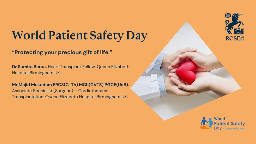 The Patient Safety Group (PSG) of the Royal College of Surgeons of Edinburgh (RCSEd) are delighted to lend our enthusiastic support to the sixth World Patient Safety Day (WPSD). This event, established by the World Health Organisation (WHO) in 2019, takes place on 17 September every year. It helps to raise global awareness amongst all stakeholders about key Patient Safety issues and foster collaboration between patients, health care workers, health care leaders and policy makers to improve patient safety. Each year a new theme is selected to highlight a priority patient safety area for action.