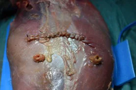 Rabbit prep, Laparotomy with ileostomy formation and abdominal wall closure.